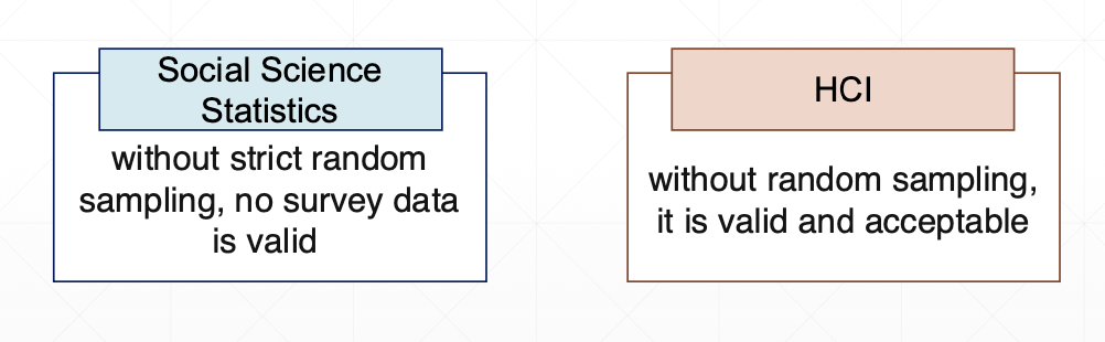 이 때문에 HCI 연구에서는 표본의 통계적 무작위성보다 현실적 접근성(accessibility) 을 우선시한다.